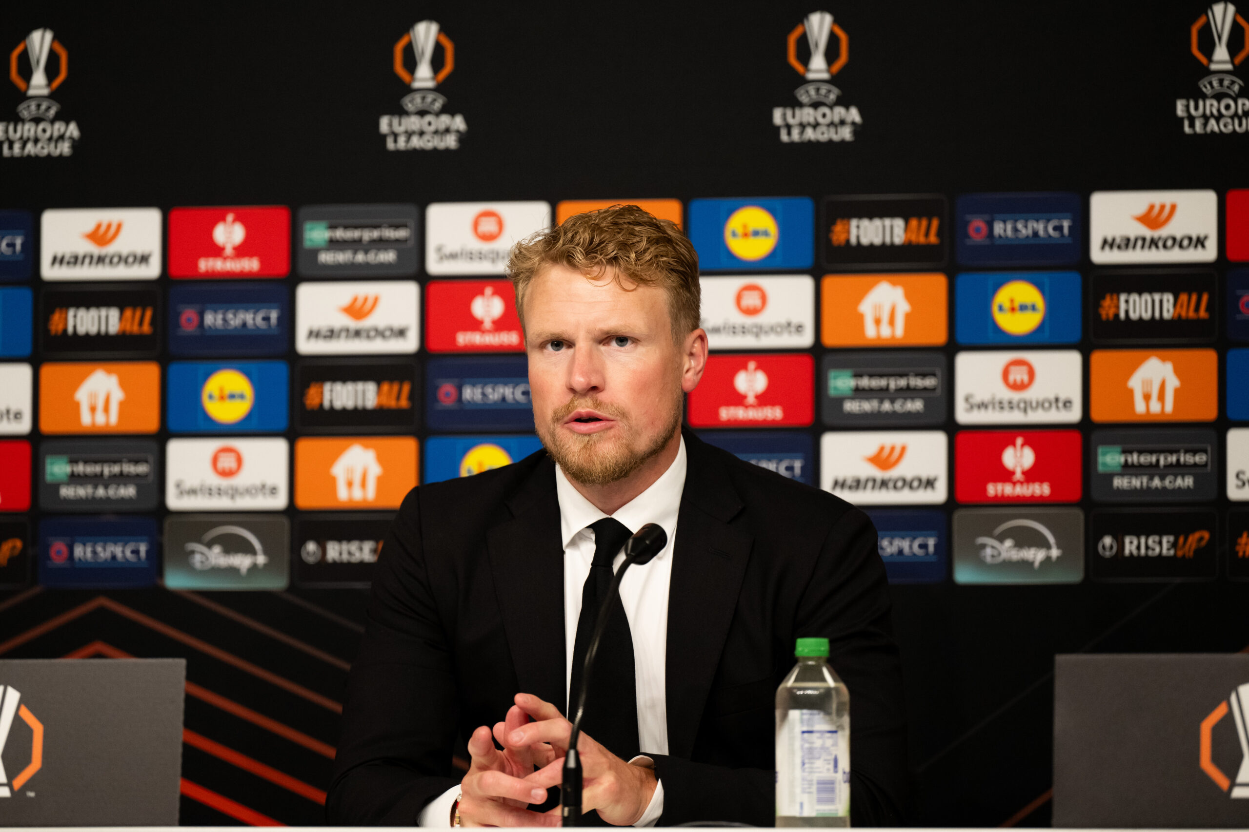 241003 Manager Oscar Hiljemark of Elfsborg during the press conference after the UEFA Europa League between Elfsborg and Roma on October 3, 2024 in Borås. Photo: Jörgen Jarnberger / BILDBYRÅN / COP 112 / JJ0405 PK och intervju efter segern mot Roma Publicerad: 2024-10-04 14:45 Facebook Twitter LinkedIn